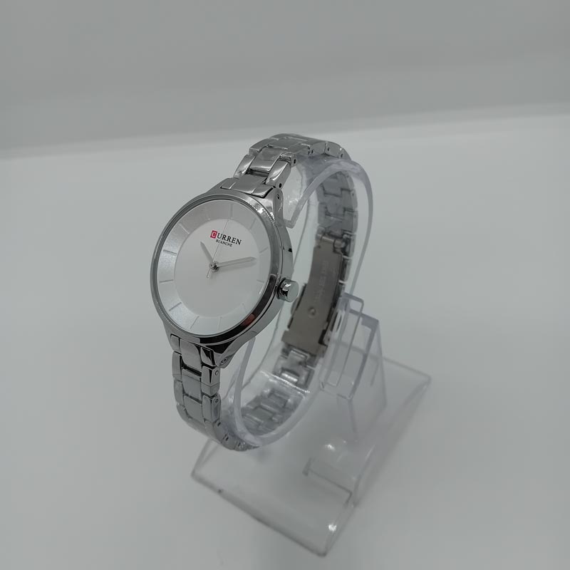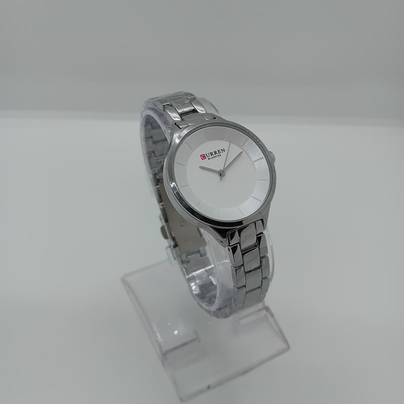 Κομψότητα και στυλ με αυτό το γυναικείο ρολόι χειρός με λευκό καντράν χωρίς αριθμούς και με λεπτό μπρασελέ ατσάλι, της εταιρείας CURREN, με μπαταρία.