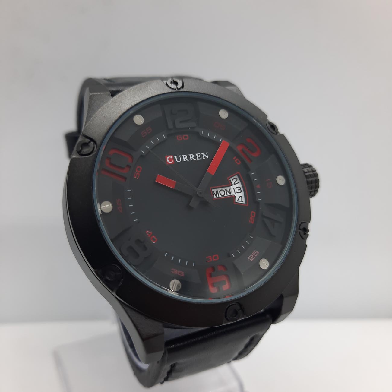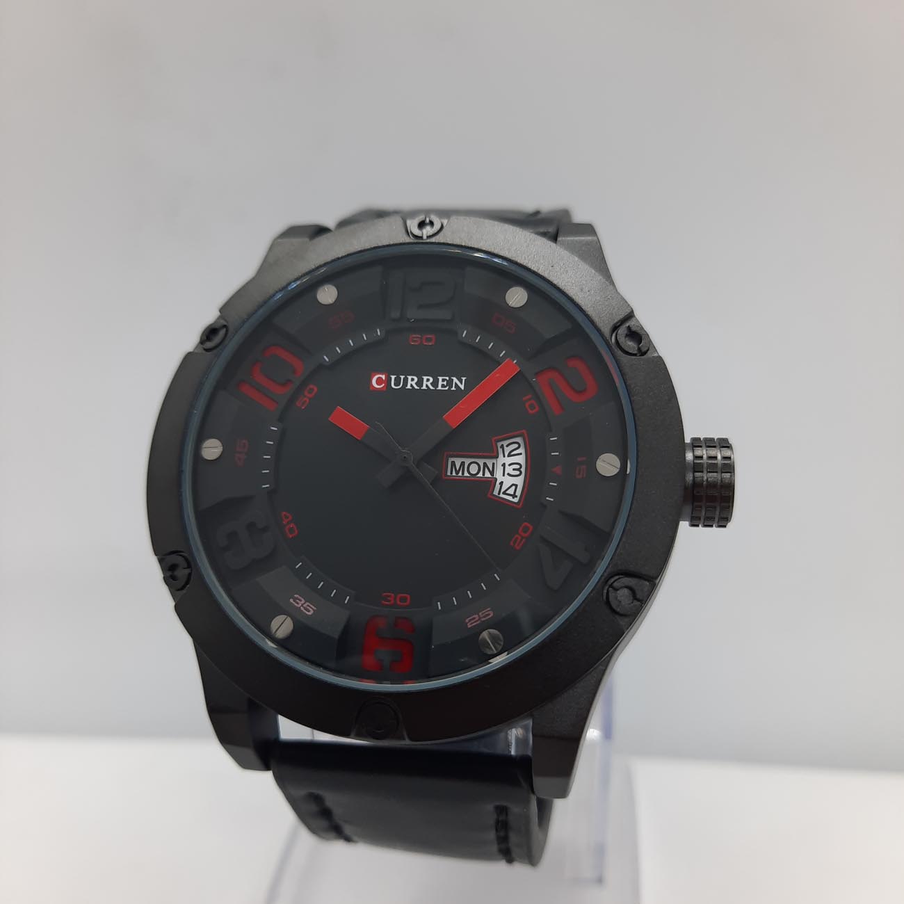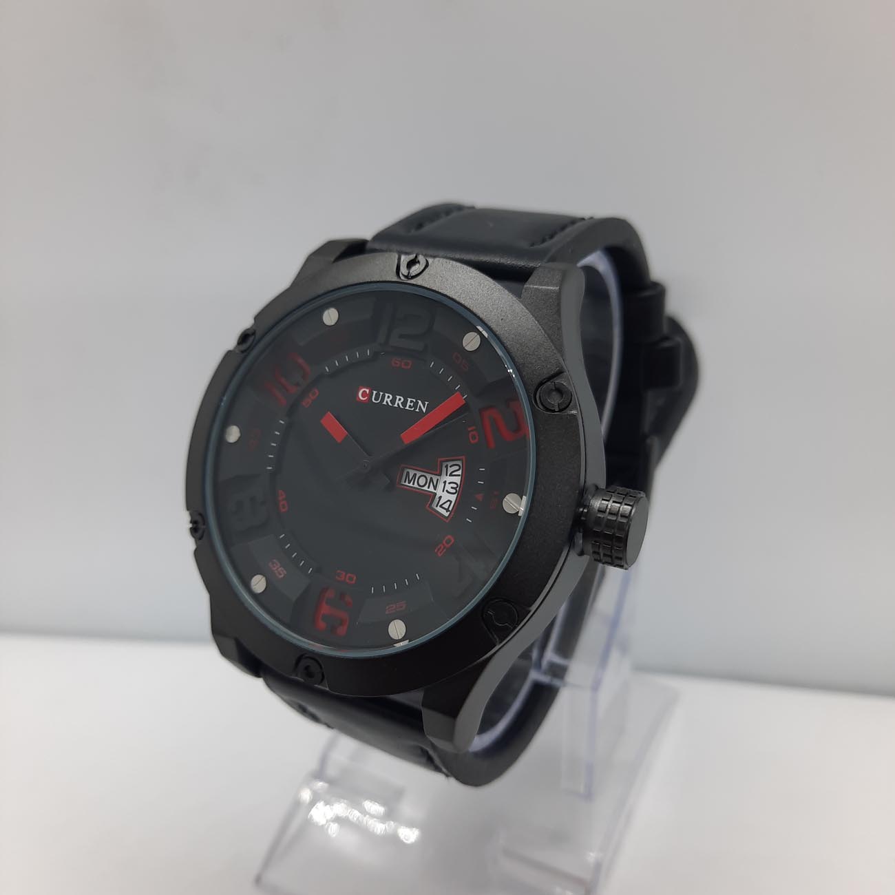 Ρολόι αντρικό σε μαύρη απόχρωση, δυναμικό ύφος, κόκκινα νούμερα, μάρκα CURREN.