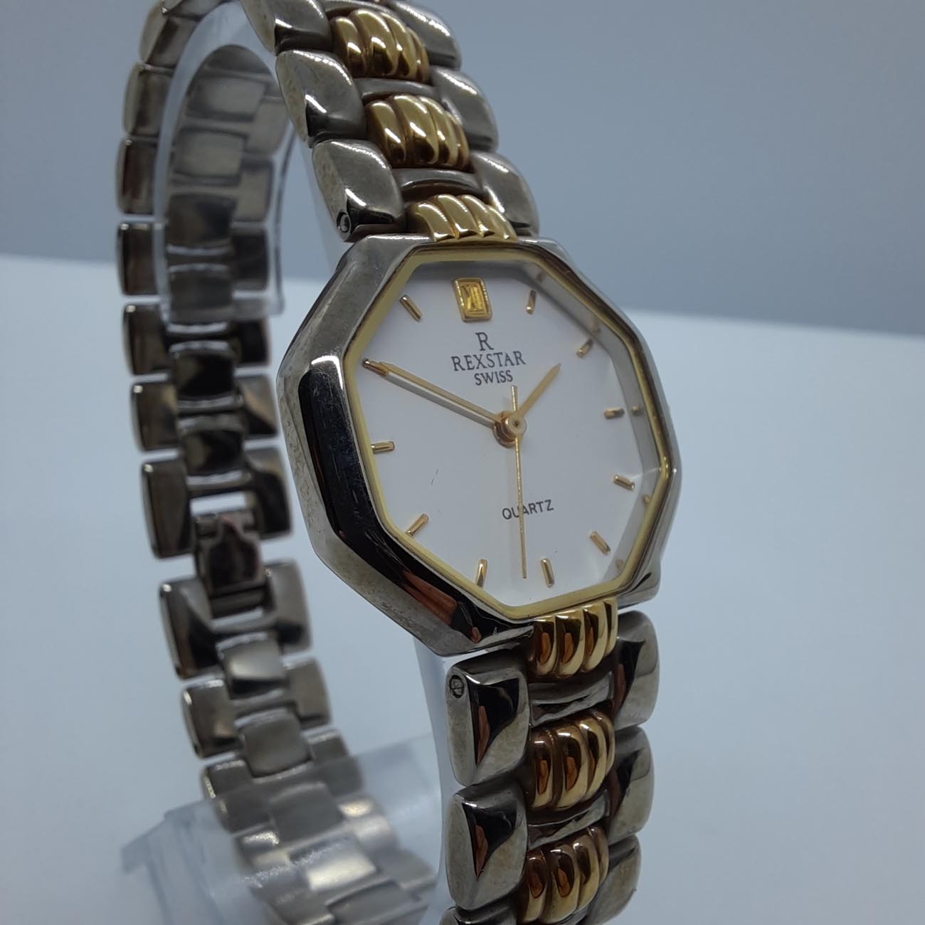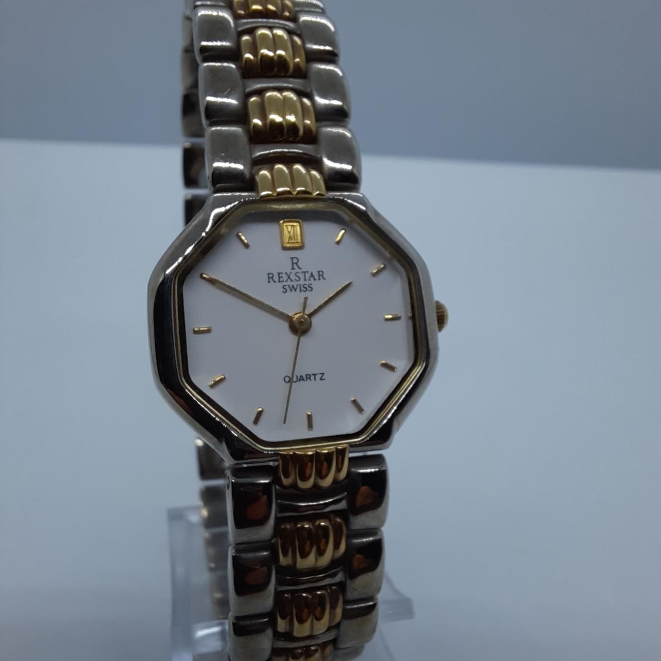 Ελβετικό ρολόι χειρός μάρκα REXSTAR με μηχανισμό QUARTZ, κομψό και φινετσάτο, με 8γωνο σχήμα