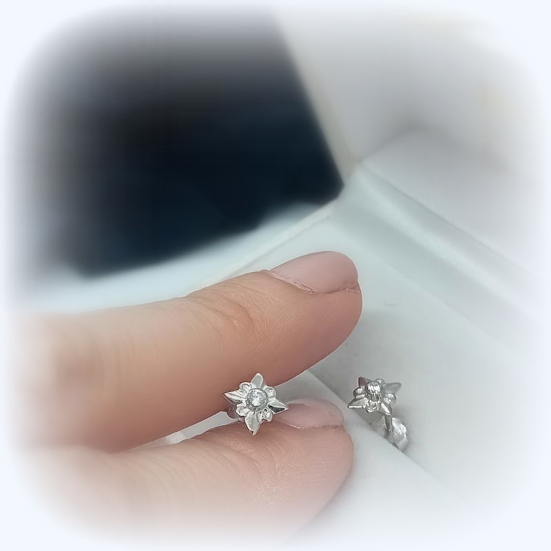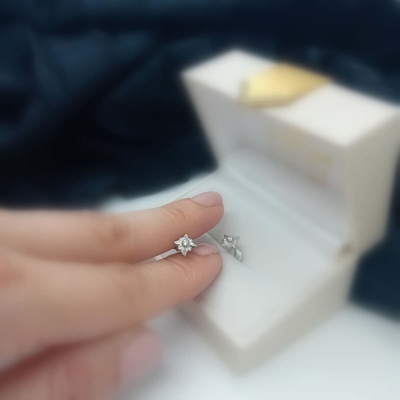 Σκουλαρίκια λευκόχρυσα Κ14 ζιργκόν "σταυρολούλουδα"