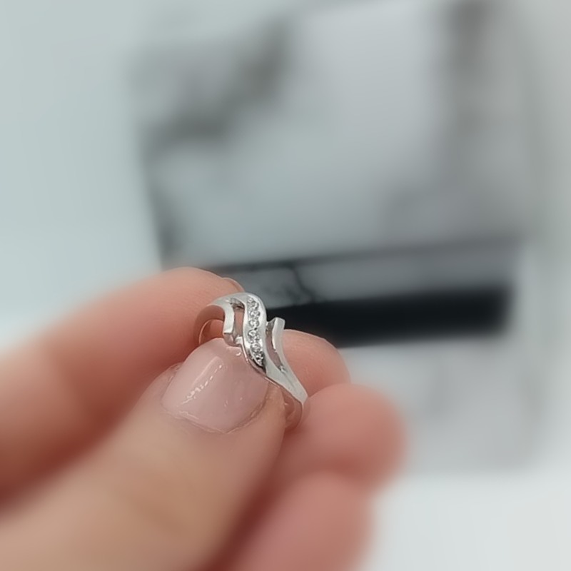 Ιδιαίτερα ρομαντική γραμμή , λουστρέ επιφάνεια,με ματ καμπύλες και λευκά ζιργκόν, αυτό το δαχτυλίδι από λευκόχρυσο 14 καρατίων αποτελεί ένα υπέροχο διαχρονικό κόσμημα για κάθε ηλικία!