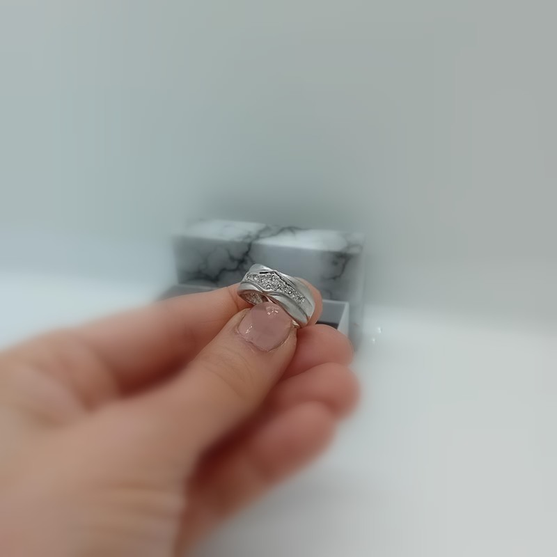 Λευκόχρυσο φαρδύ δαχτυλίδι Κ14 με ζιργκόν