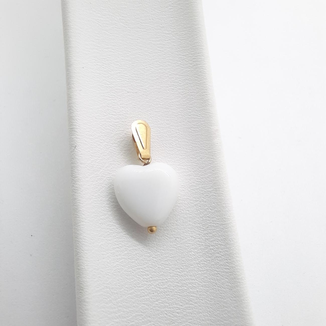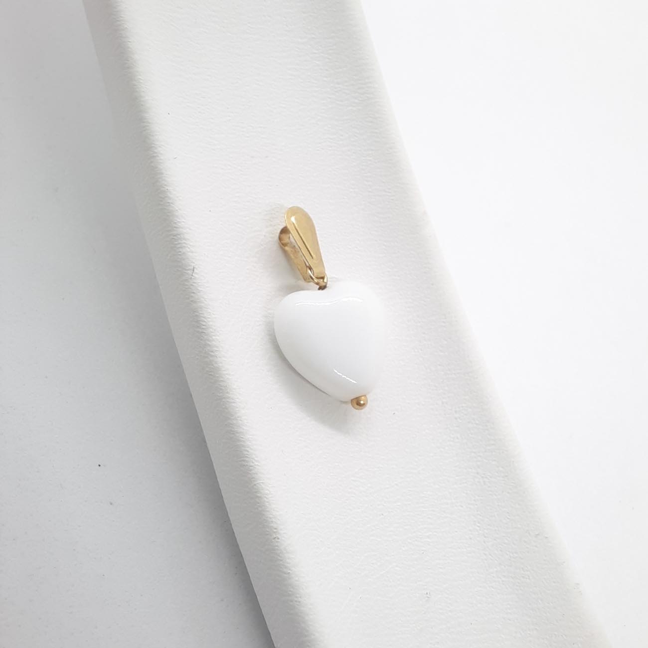 Ενα διαχρονικό μενταγιόν για μια τομαντική φινετσάτη γυναίκα. Μια υπέροχη λευκή καρδούλα με χρυσές λεπτομέρειες από χρυσό 14 καρατίων.