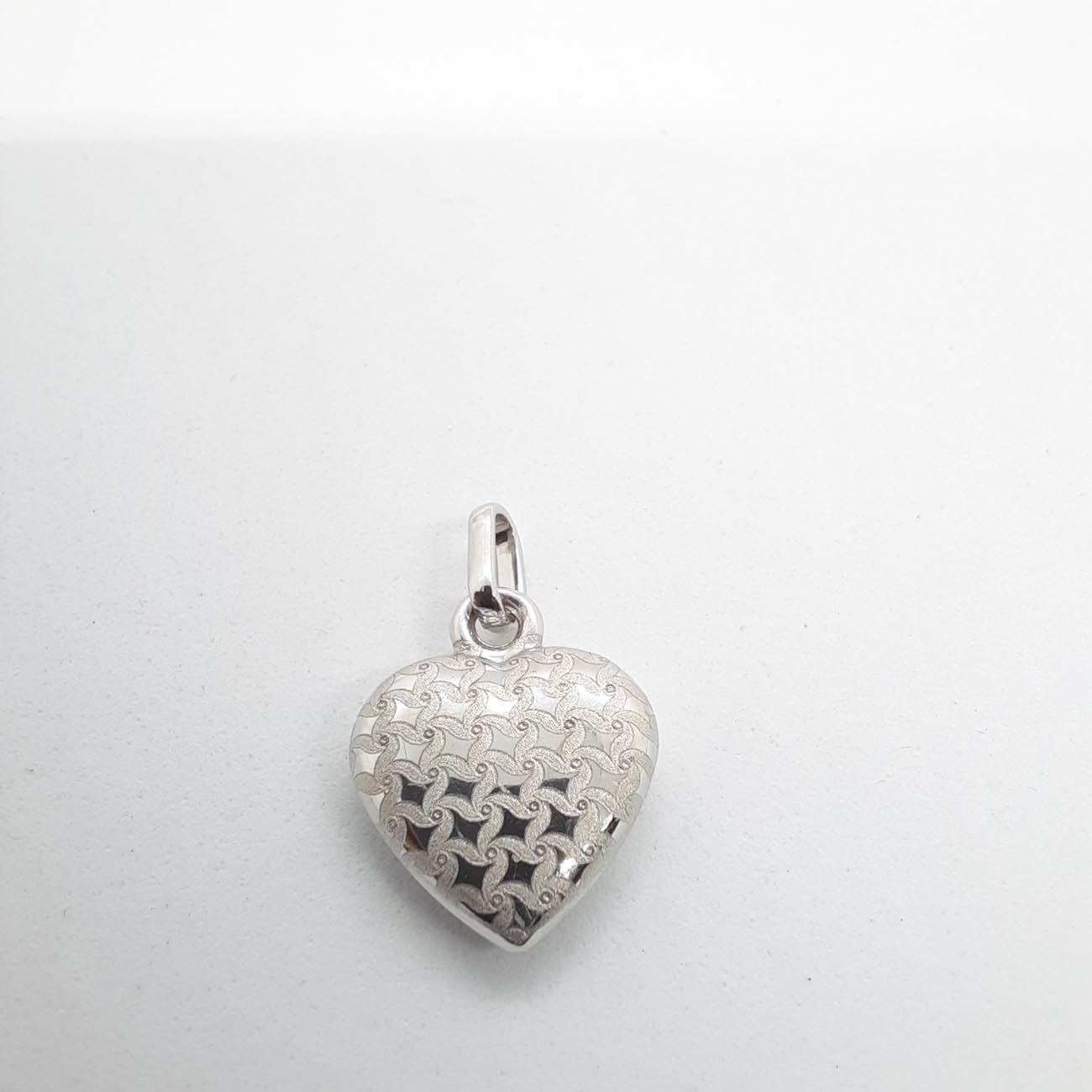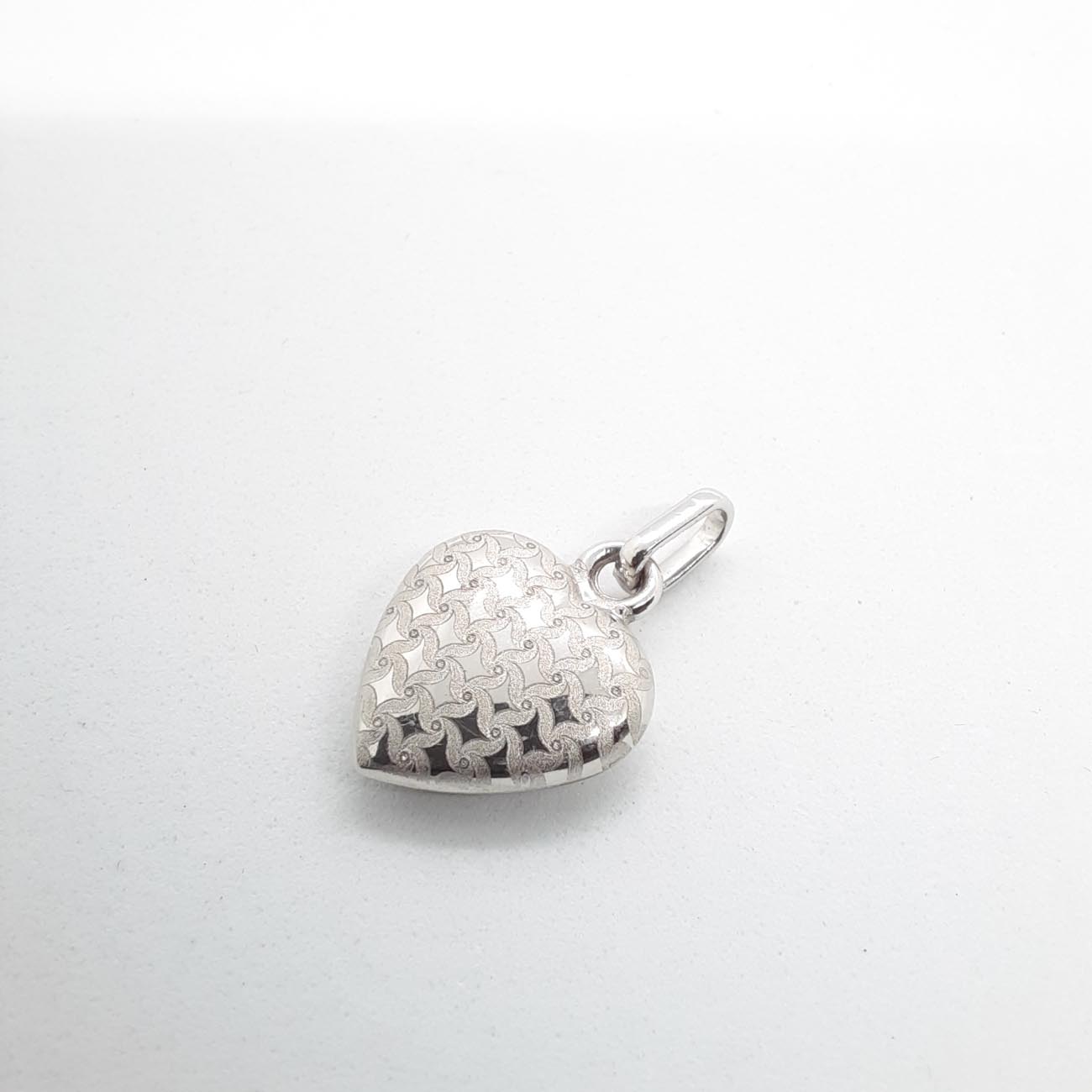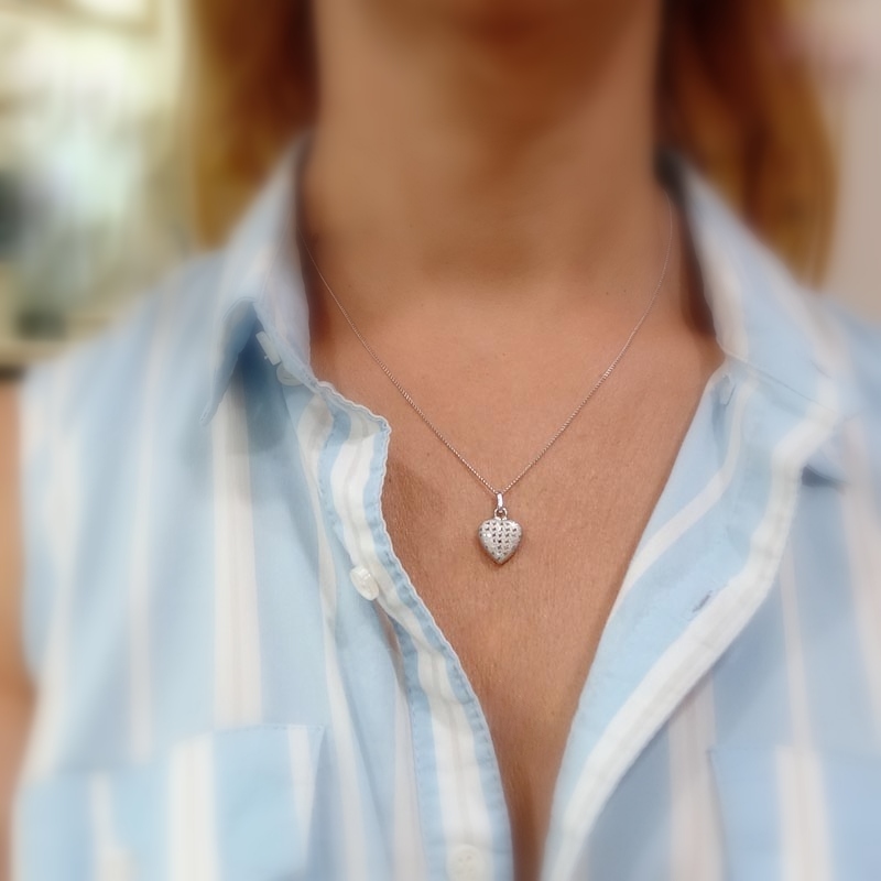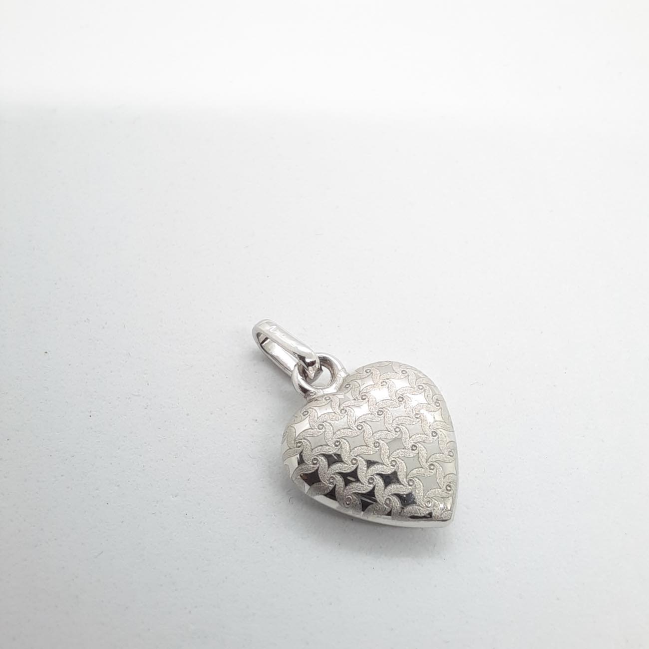 Υπέροχη καρδιά από λευκόχρυσο , με χαρακτηριστικό design , μπορείτε να την φορέσετε και ντουμπλ-φας, με πίσω όψη λαμπερή λουστρέ .( Η καρδιά διατίθεται μεμονωμένη και ΔΕΝ περιλαμβάνει την αλυσίδα που χρησιμοποιήθηκε για τις ανάγκες της φωτογράφισης.)