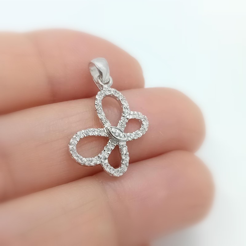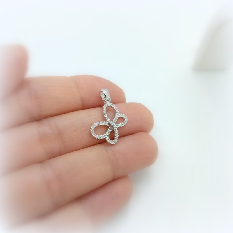 Πολύτιμο όσο εσείς! Κομψό διαχρονικό κόσμημα, σε σχέδιο πεταλούδας από λευκόχρυσο 14 καρατίων με αφθονία λευκών ζιργκόν,πολύ κομψό και εντυπωσιακό δώρο για μια ρομαντική γυναίκα κάθε ηλικίας .