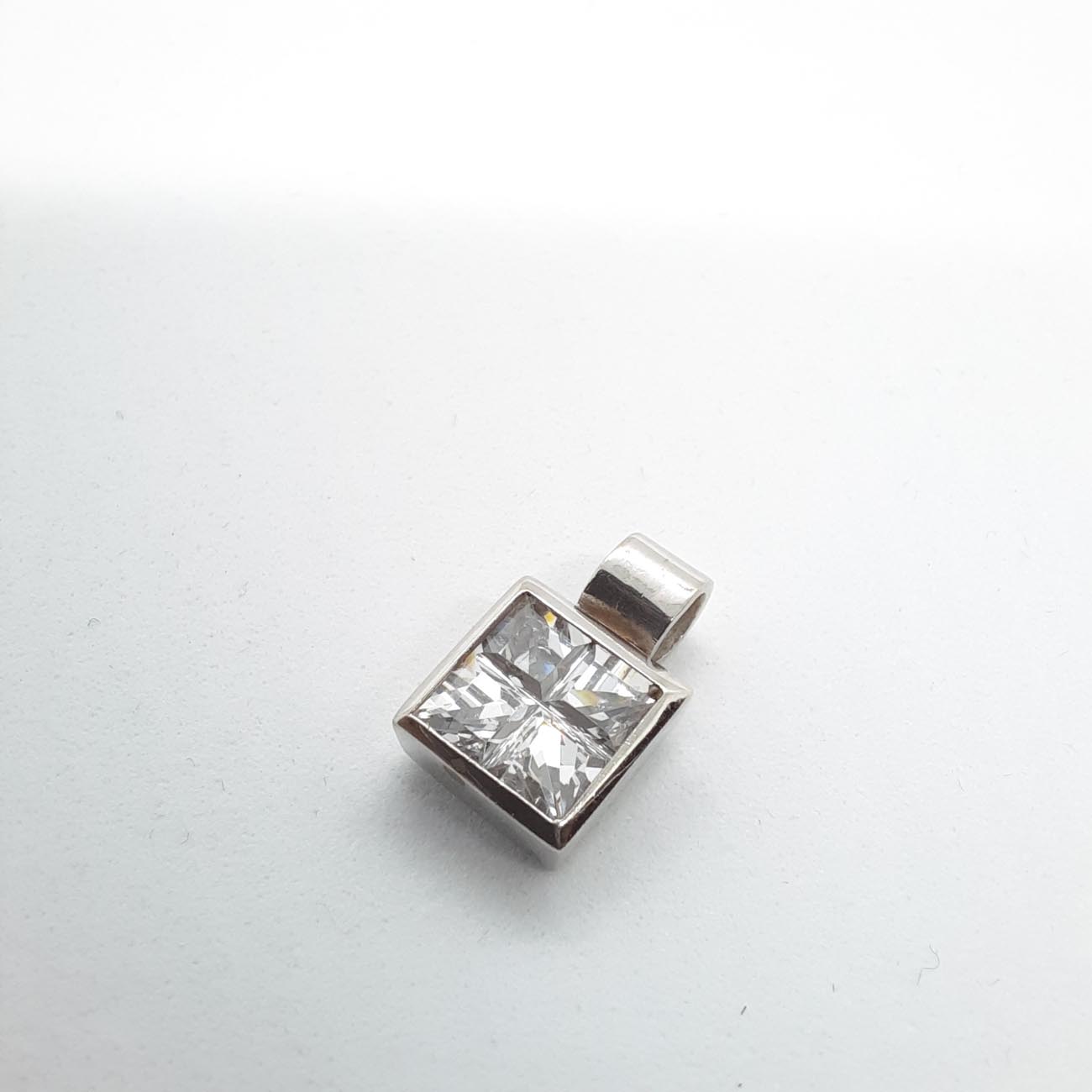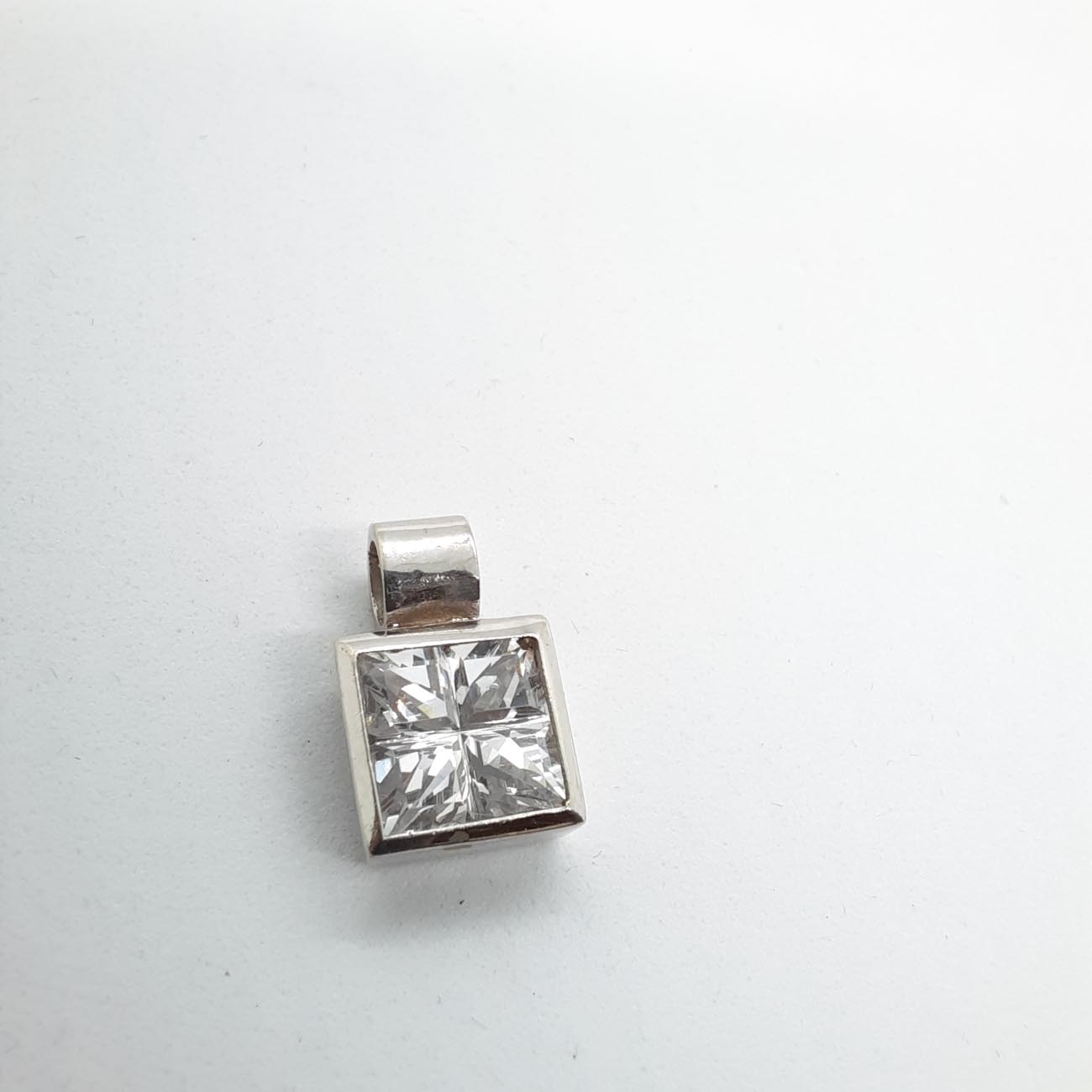 Γεωμετρικό design, minimal εμφάνιση, τετράγωνο παντατίφ από λευκόχρυσο με ένα πελώριο λευκό ζιργκόν, εντυπωσιακό και ταυτόχρονα λιτό.
