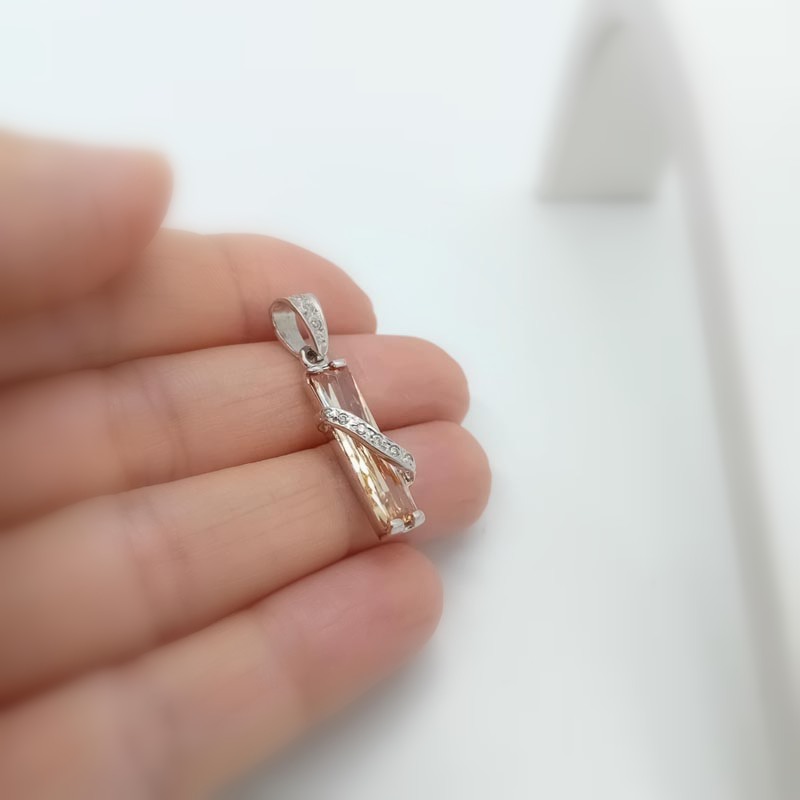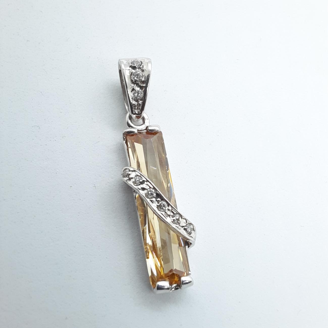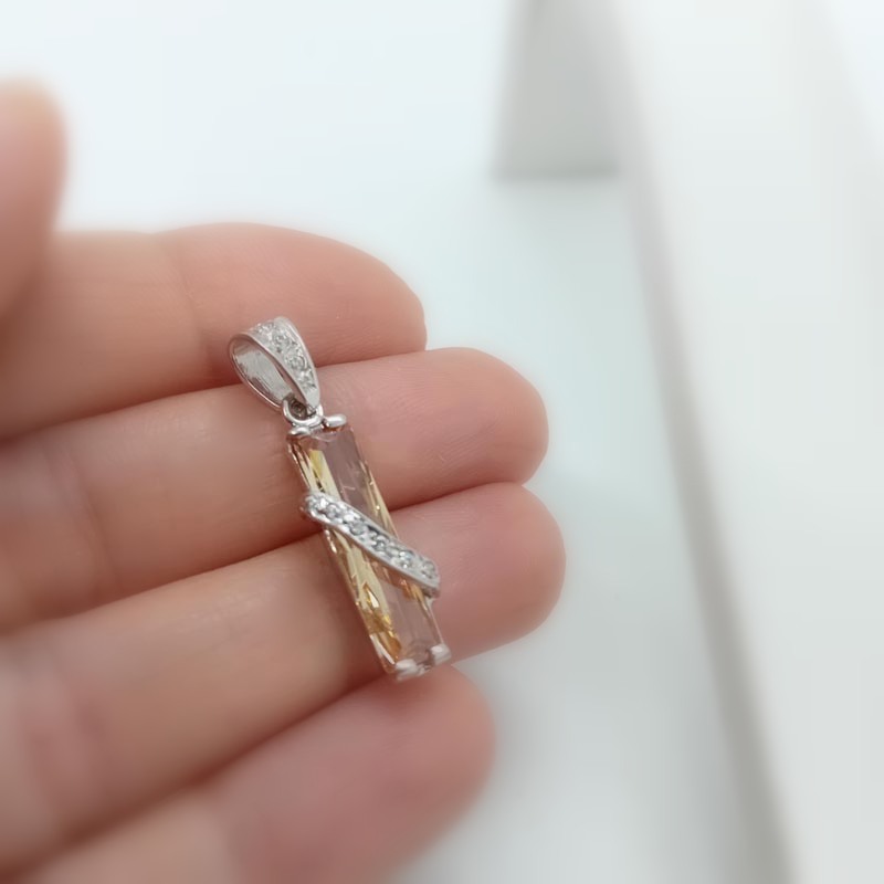 Ιδιαίτερο μίνιμαλ μενταγιόν, πρωτότυπο design "στήλη" με κιτρινωπό μακρύ ζιργκόν, σε εντυπωσιακό μέγεθος, από λευκόχρυσο 14 καράτια .