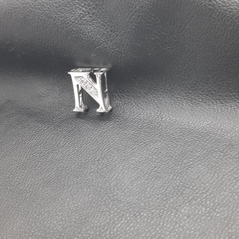 Για την Νικολέτα, την Νάνσυ ή την Νάντια το πιο συναρπαστικό δώρο: λευκόχρυσο 14 ΚΑΡΑΤΙΩΝ μενταγιόν μονόγραμμα με σειρά λευκών ζιρκόν, τρισδιάστατο γεωμετρικο design.