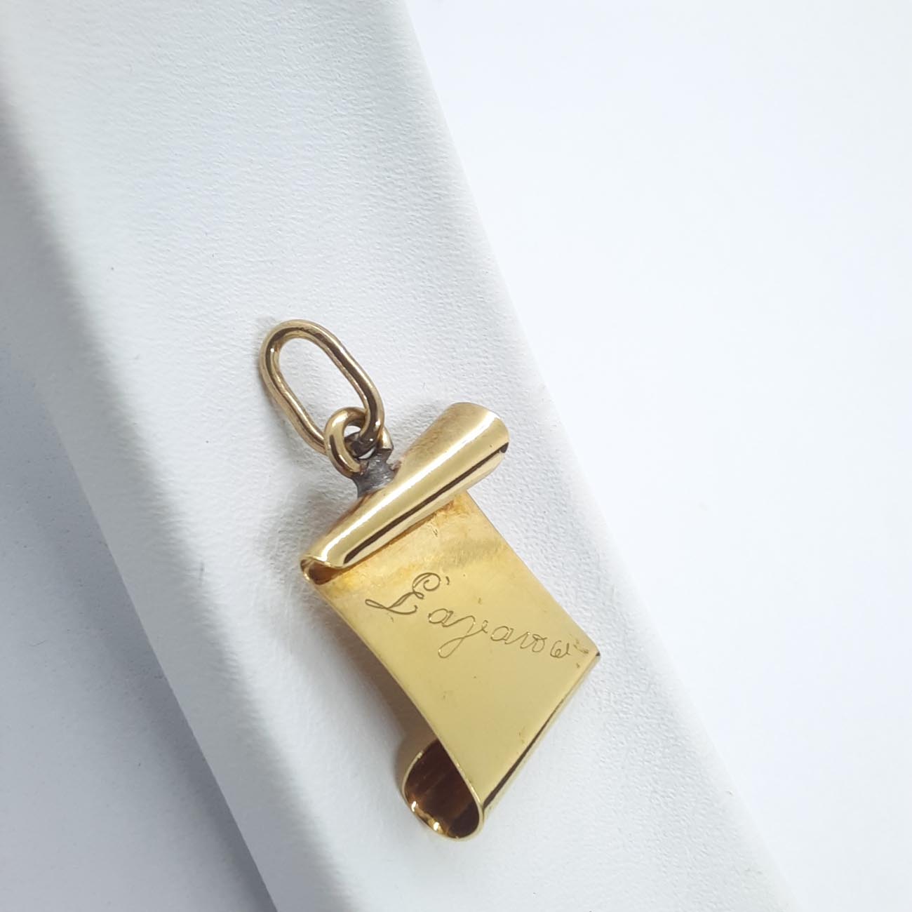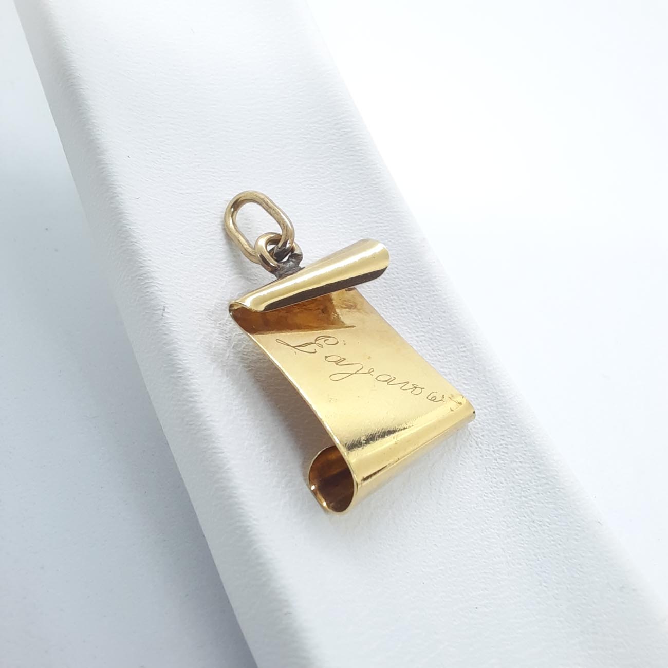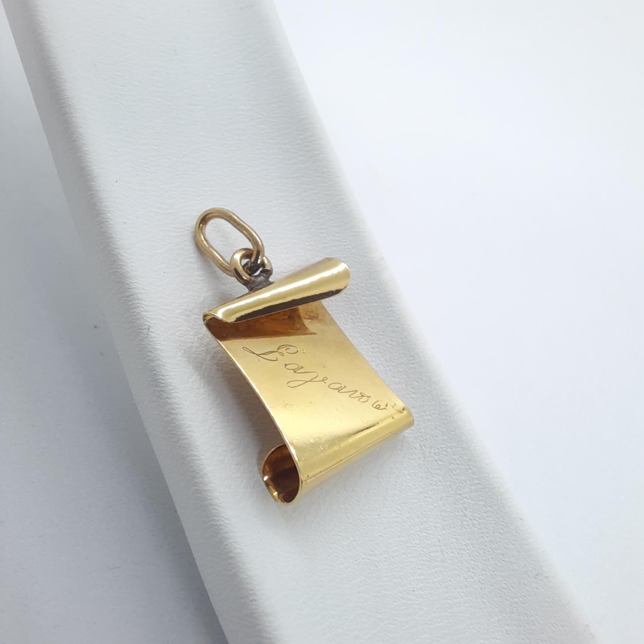 Μια τρυφερή απόδειξη αγάπη γύρω από τον λαιμό σας. Χρυσός πάπυρος vintage ύφους ,14 καρατίων, με ρεαλιστικές λεπτομέρειες και χαραγμένο το Σ' αγαπώ . Ένα μενταγιόν διαχρονικής κλασικής αξίας.