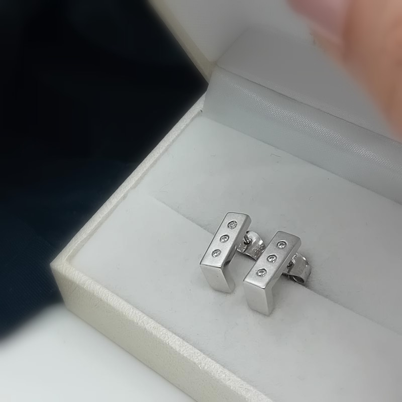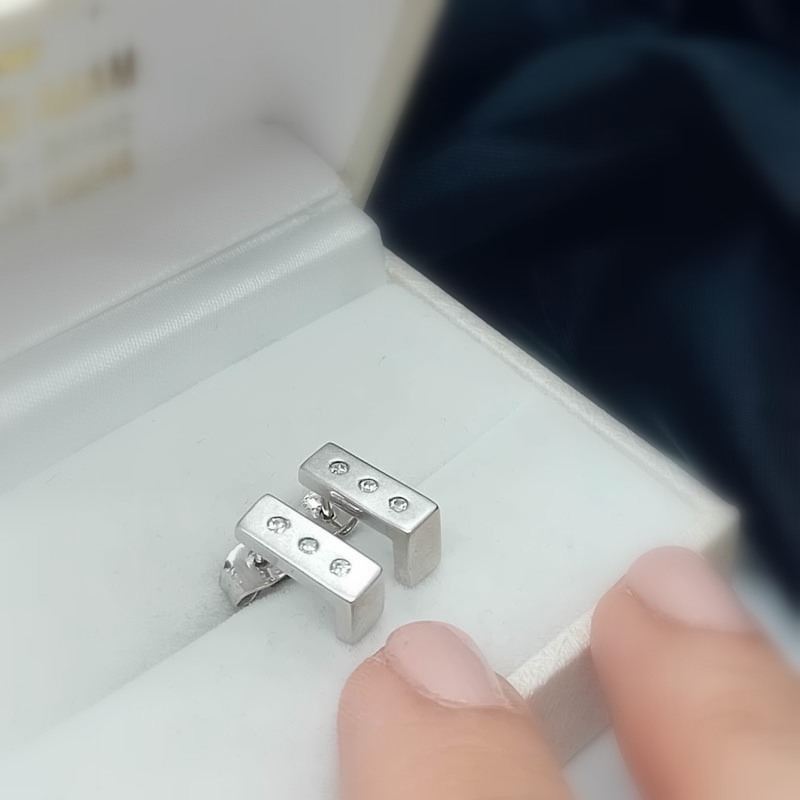 Η πολυτέλεια δεν "κραυγάζει"... ψιθυρίζει και γοητεύει ! Με γεωμετρικό, μοντέρνο, μίνιμαλ design από λευκόχρυσο, με ματ όψη και 3 διακριτικά λευκά ζιργκόν τα ισκουλαρίκια αυτά ταιριάζουν για κάθε περίσταση της ζωής της γυναίκας που επιλέγει την διακριτική γοητεία πρωί-βράδυ.