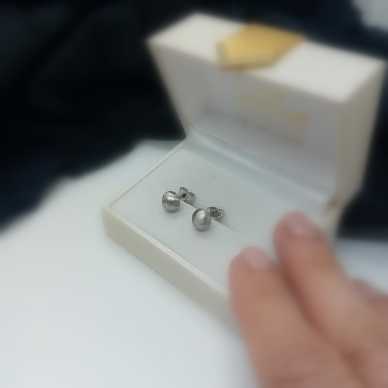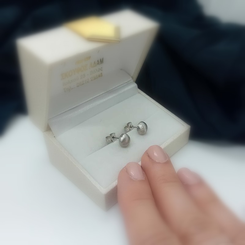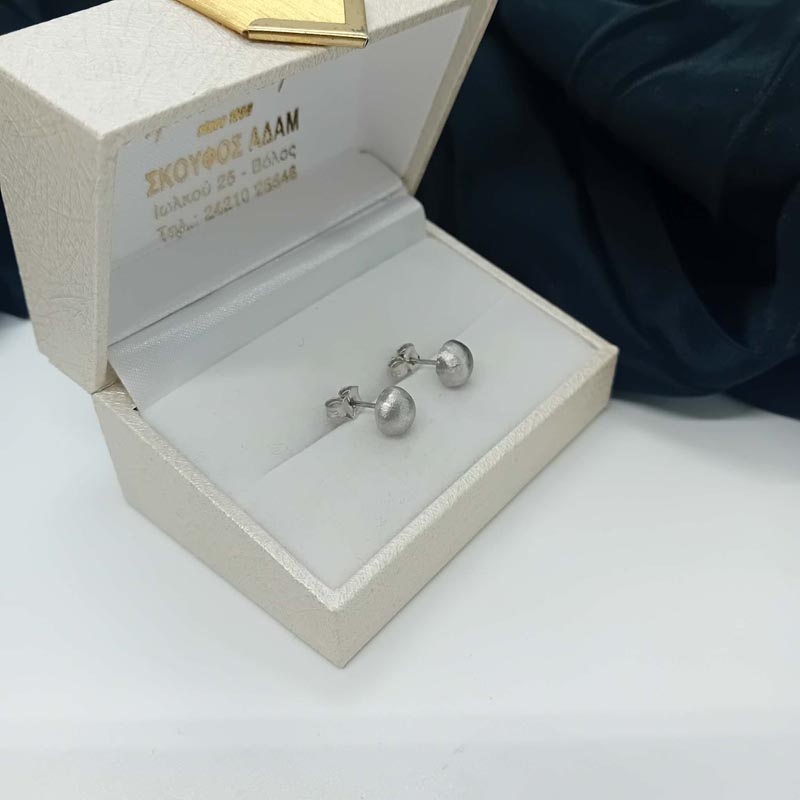 Διακριτικές και ευκολοφόρετες από κάθε ηλικιακή ομάδα μπίλιες σκουλαρίκια ματ επεξεργασίας από λευκόχρυσο 14 καρατίων.