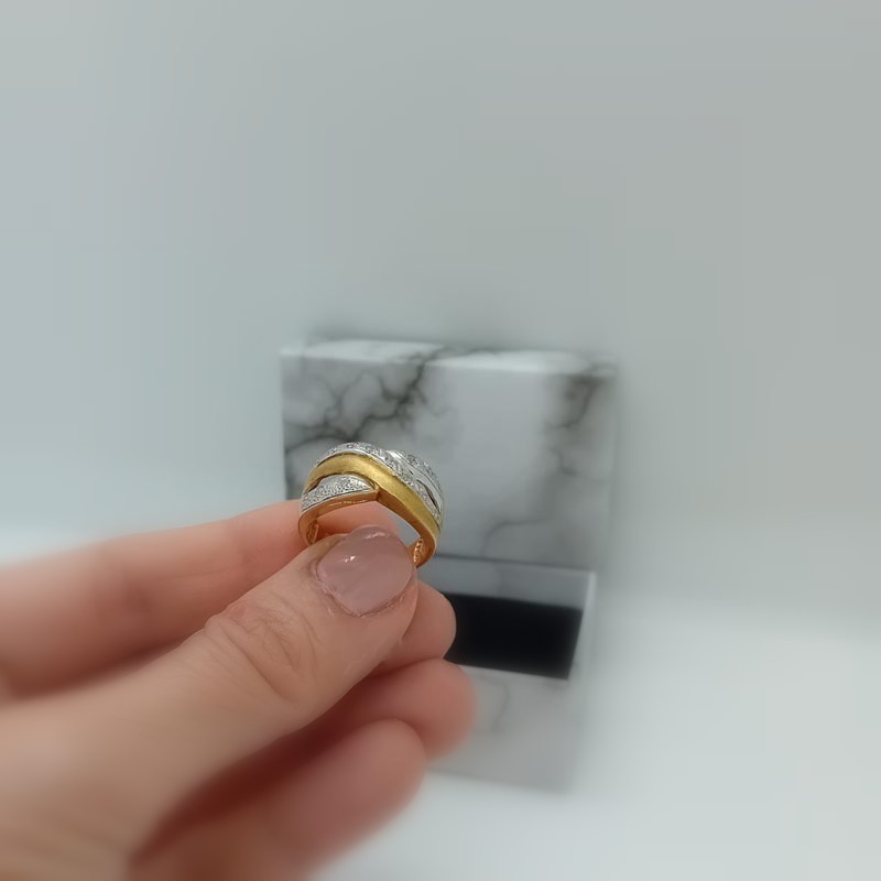 Χρυσό δαχτυλίδι Κ14 "άπειρο" σε φαρδιά γραμμή με ζιργκόν