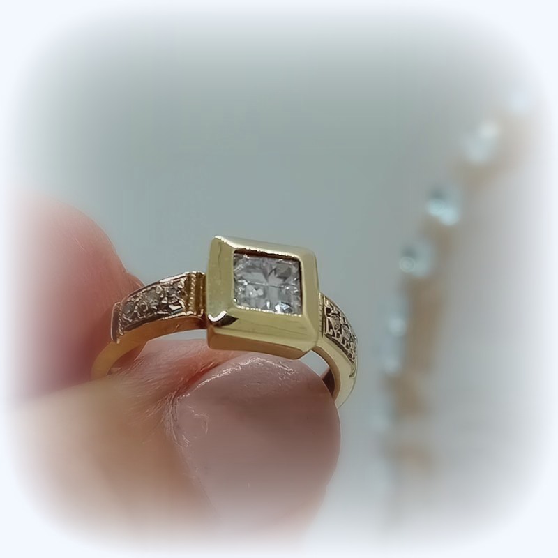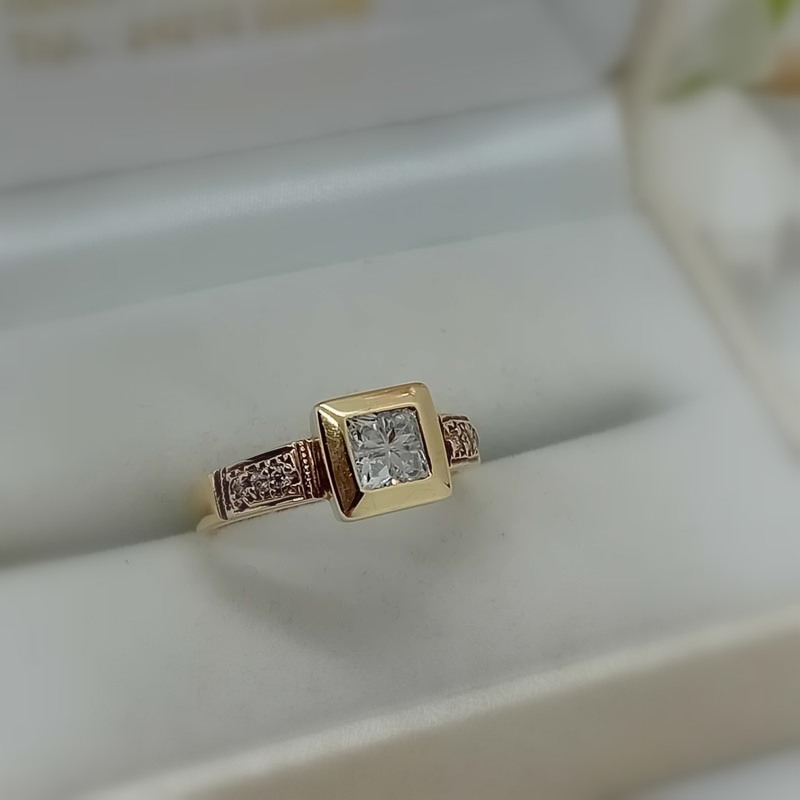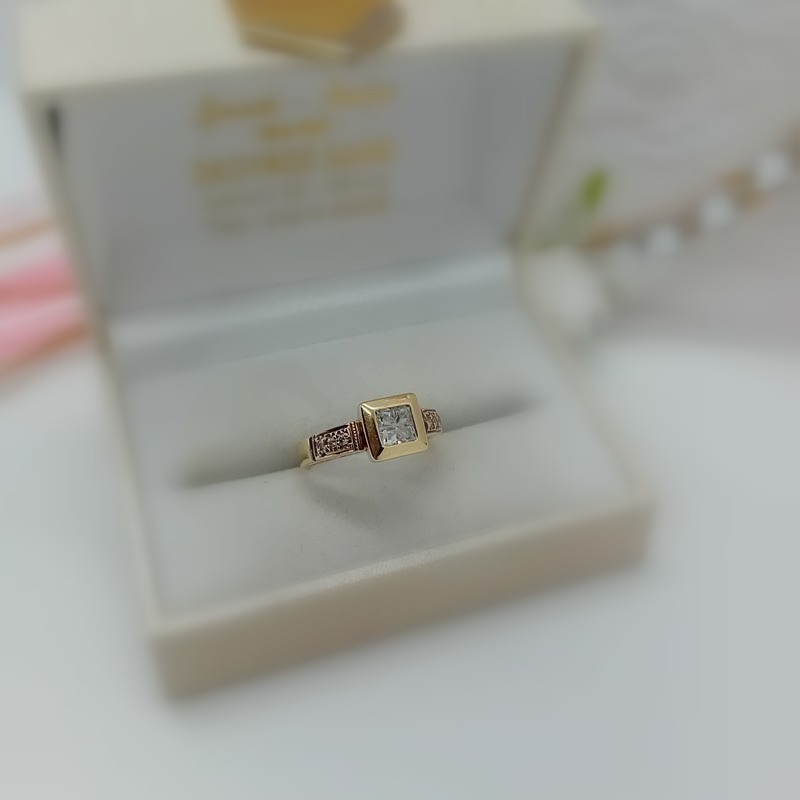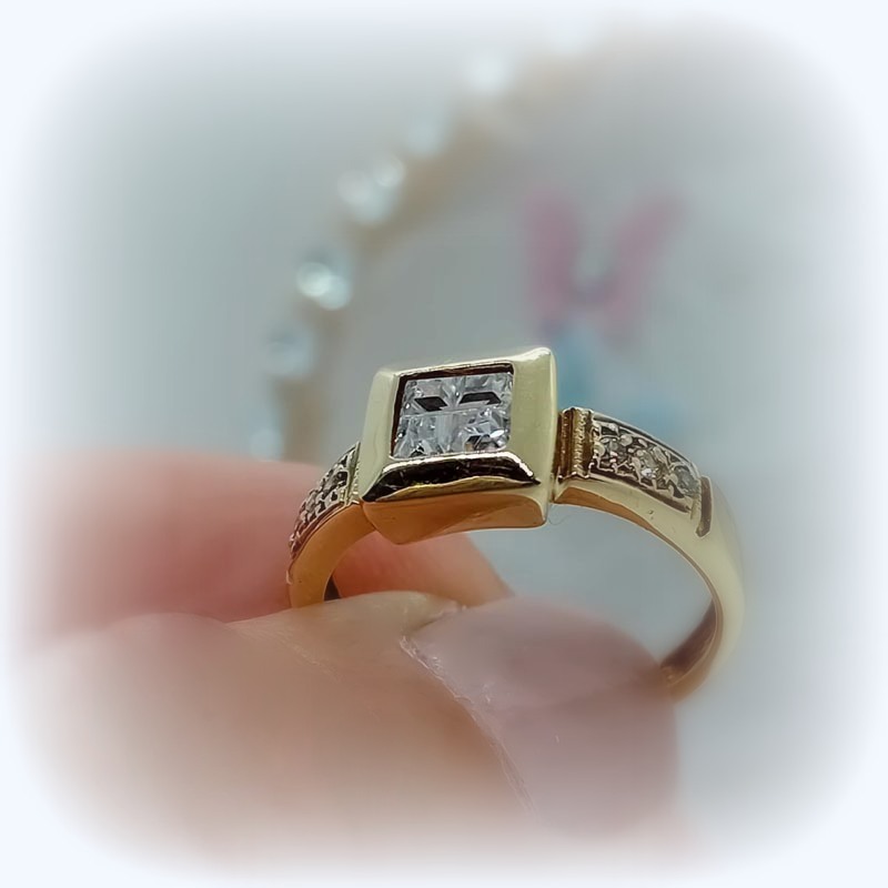 Σαν βγαλμένο από παραμύθι, ένα πριγκιπικό κόσμημα από χρυσό 14 καρατίων, με εκτυφλωτικό κεντρικό λευκό ζιργκόν σε τετράγωνο καστόνι και 4 πλευρικά ζιργκόν,ένα δαχτυλίδι με κύρος και προσωπικότητα,