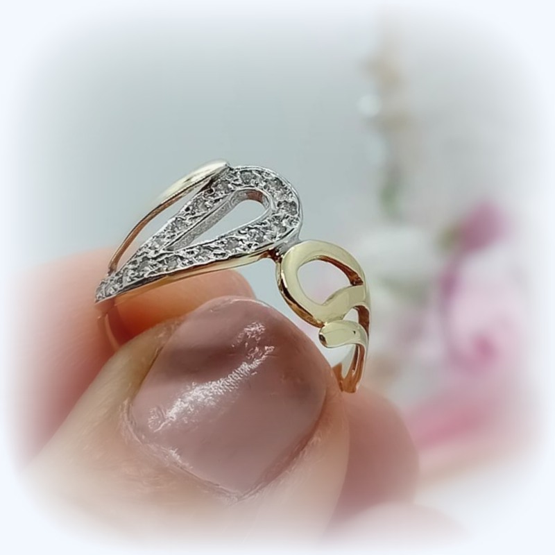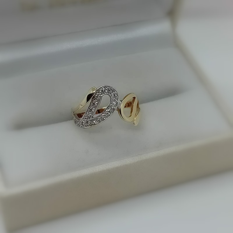 Απίστευτη κομψότητα , θηλυκές καμπύλες, περίτεχνο γεωμετρικό design που συμβολίζει την ένωση: ένα εκτυφλωτικό κόσμημα από χρυσό 14 καρατίων με λευκά ζιργκόν, ιδανικό δώρο αρραβώνα, γάμου, επετείου , αλλά και γιατί όχι ; δώρο αγάπης προς τον εαυτό μας, επειδή απλά το αξίζουμε !